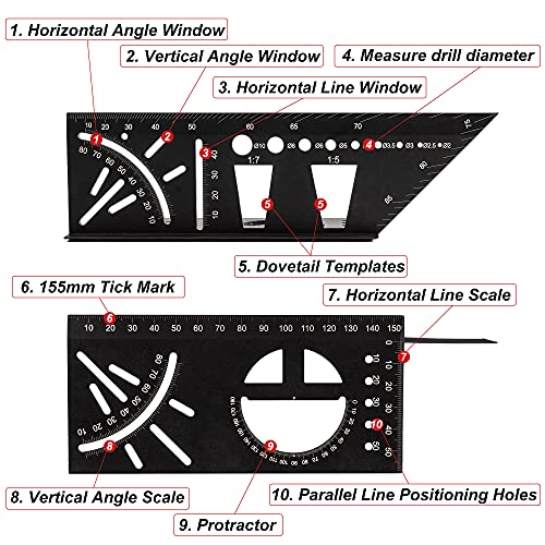 Verbessern Sie die Effizienz: Das EZARC quadratische Werkzeug-Set kann Ihnen helfen, die Arbeitseffizienz zu verbessern und Zeit bei Holzbearbeitungsprojekten zu sparen. Es ist der beste Helfer für Wartungsarbeiter, Tischler, Installateure, Bauarbeiter, Ingenieure.